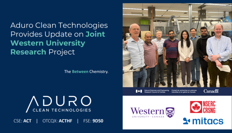 Aduro Clean Technologies Provides Update on Joint Western University Research Project